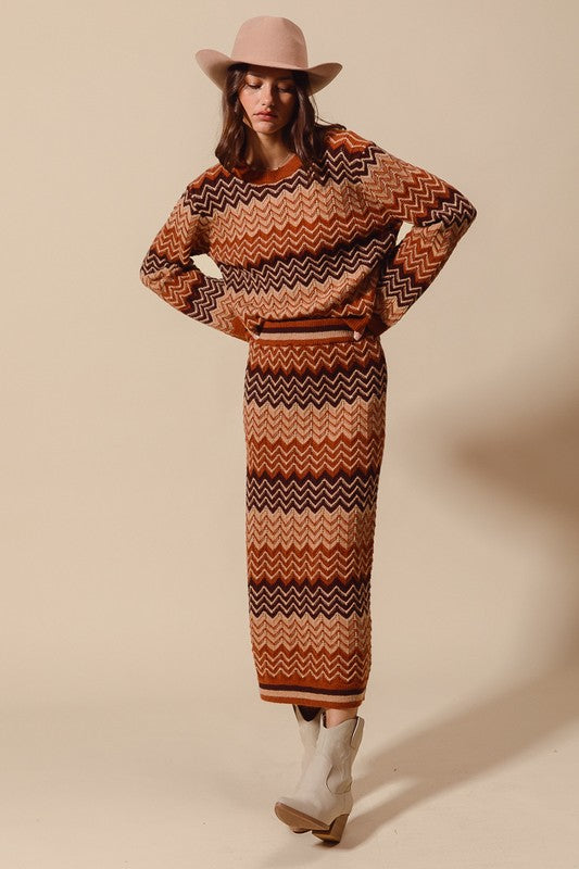 MULTI COLOR CHEVRON SWEATER MAXI SKIRT