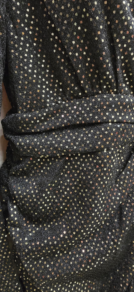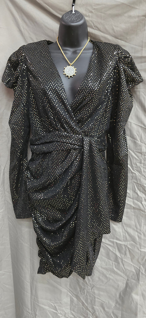 V-NECK PUFF SLEEVE SURPLICE WAIST TIE BACK ZIPPER LUREX