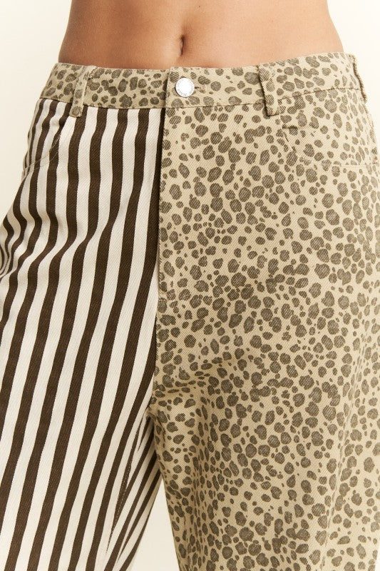 MIX & MATCH LEOPARD-STRIPE PANTS PLUS