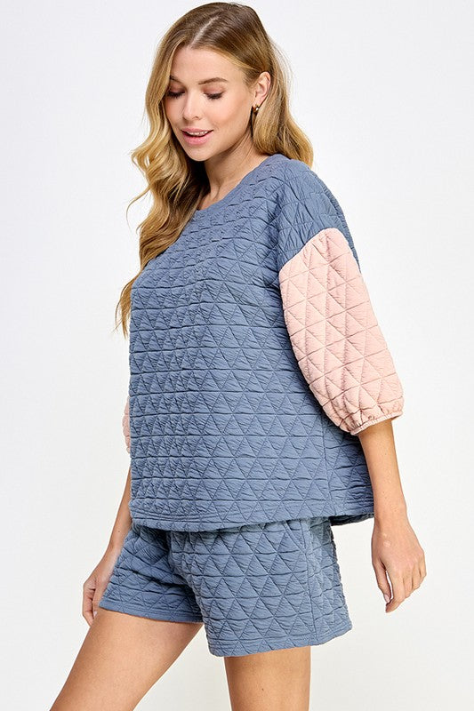 Quilted Contrast Sleeve Top