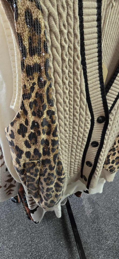 USA106 - SEQUIN/LEOPARD SWEATERVEST