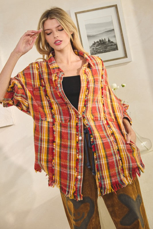WASHED PLAID SNAP BUTTONDOWN JACKET
